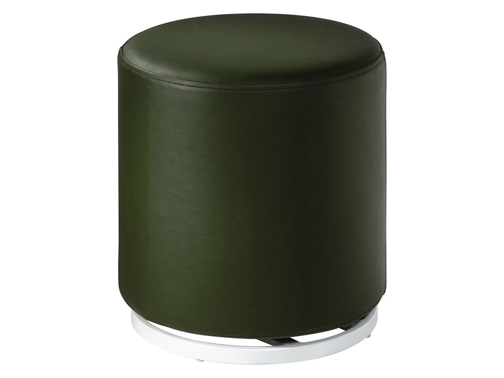 CEOT-080 (Olive Faux Sheep Fur) | Marche Swivel Ottoman -- Trade Show Rental FurnitureMarche Swivel Ottoman in vinyl and fabric come in a variety of colors. Includes a white gloss, swivel metal base. Dimensions: 17" RND, 18" H