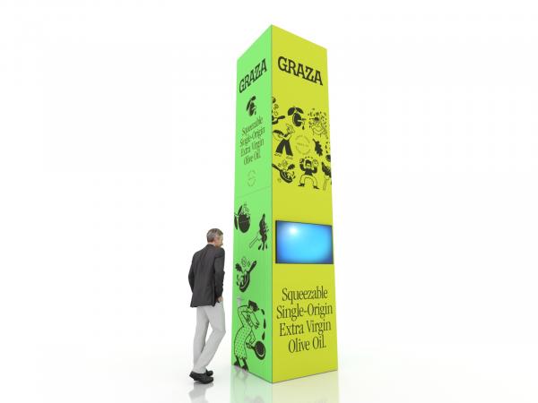 Towers are the ideal building block for creating a customized island exhibit. Start by choosing the tower size. Then add counters, workstations, lightboxes, and furniture to complete the design. For many exhibitors, flexibility is crucial. Their booth size and messaging often changes depending on the show and the audience. A tower serves as the central feature in the booth design but everything else can vary. Perfect!