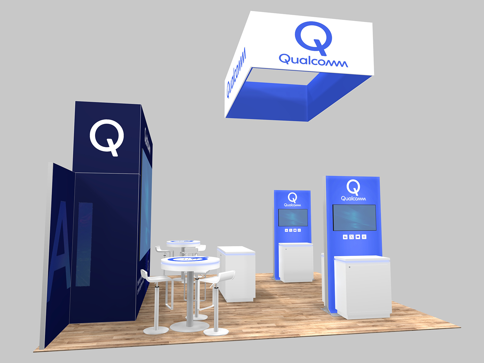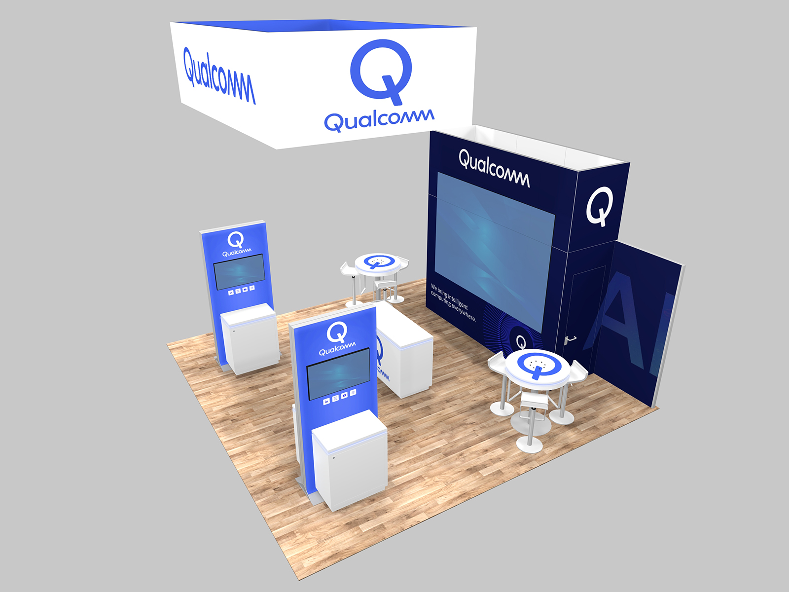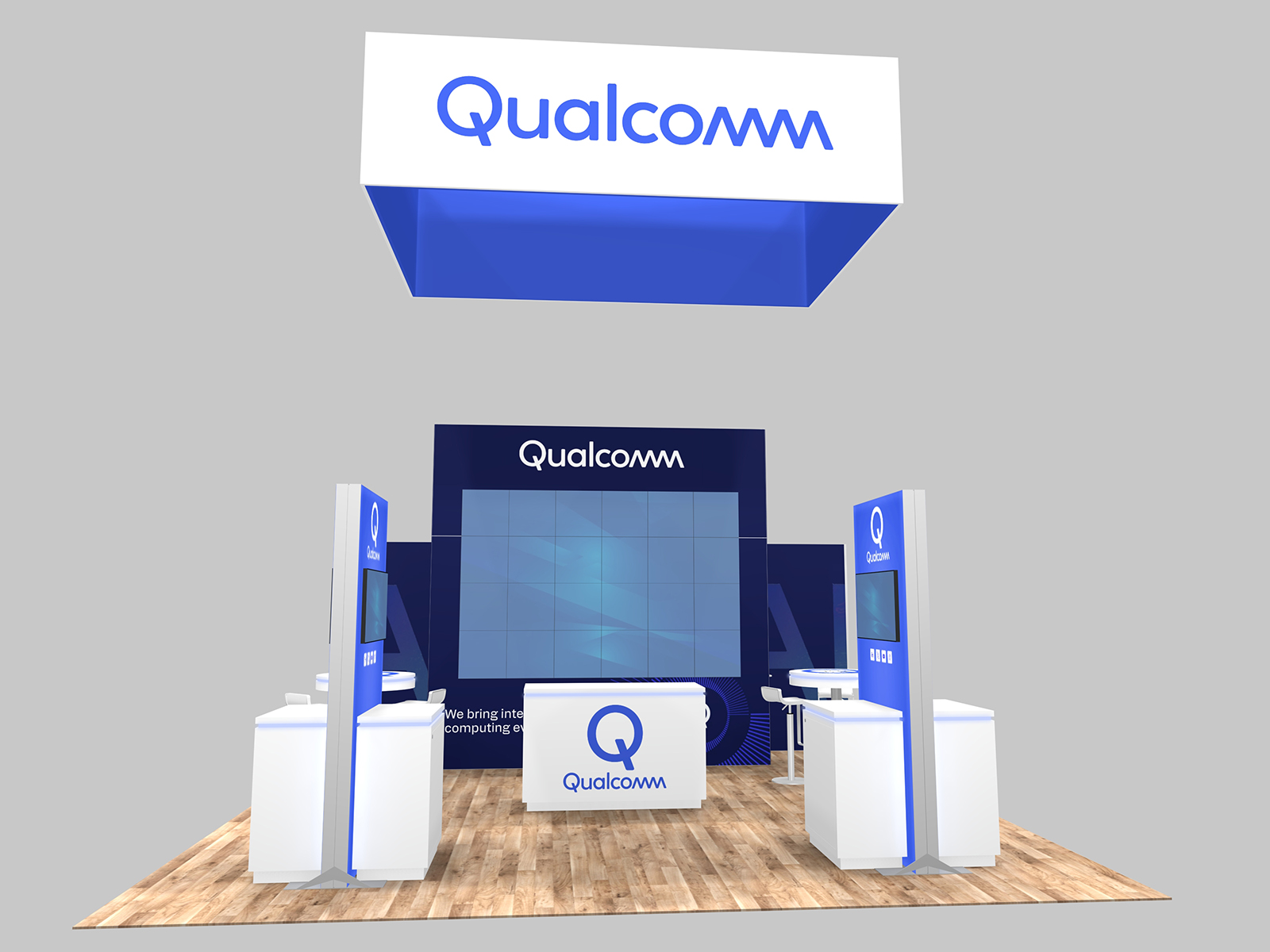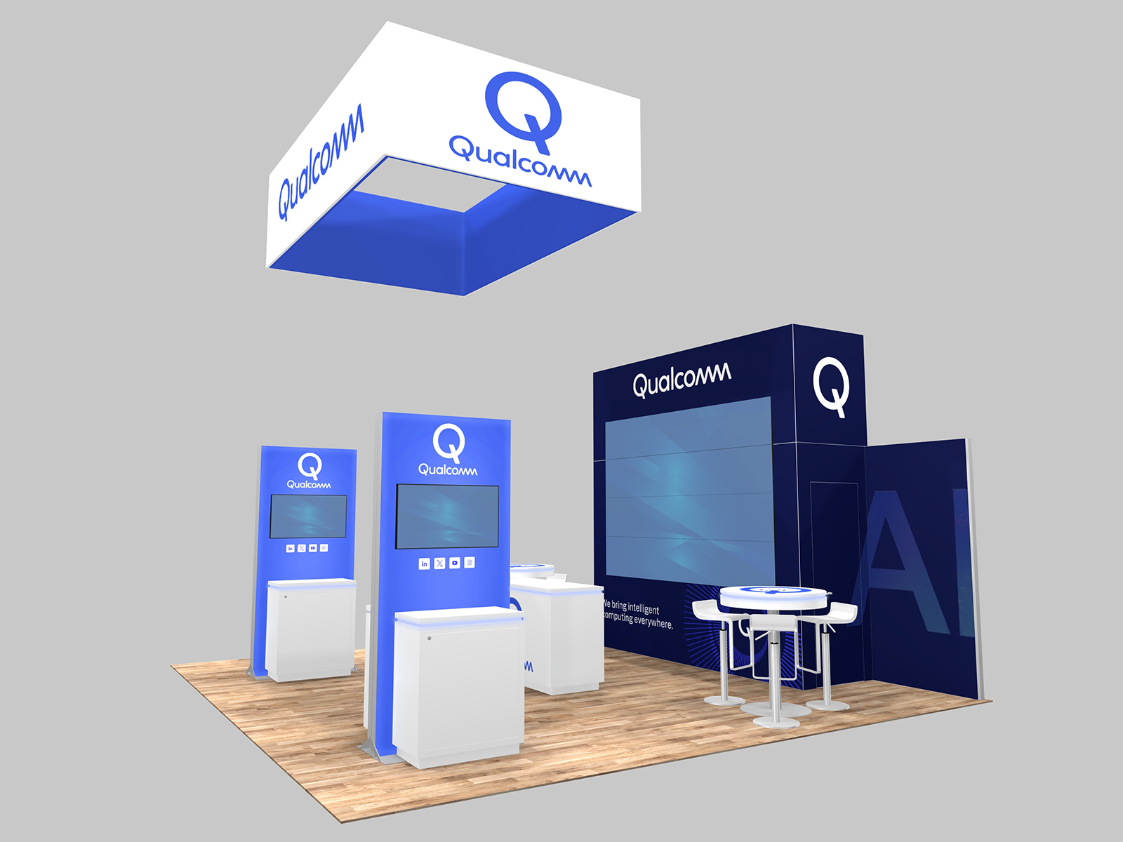 Light and movement attract attention on the trade show floor. Smart exhibitors use that to their advantage with compelling large format videos using LED video tiles and monitors. The RE-9221 is a rental island design using modular components to achieve an upscale, multi-functional exhibit in a 400 sq. ft space.