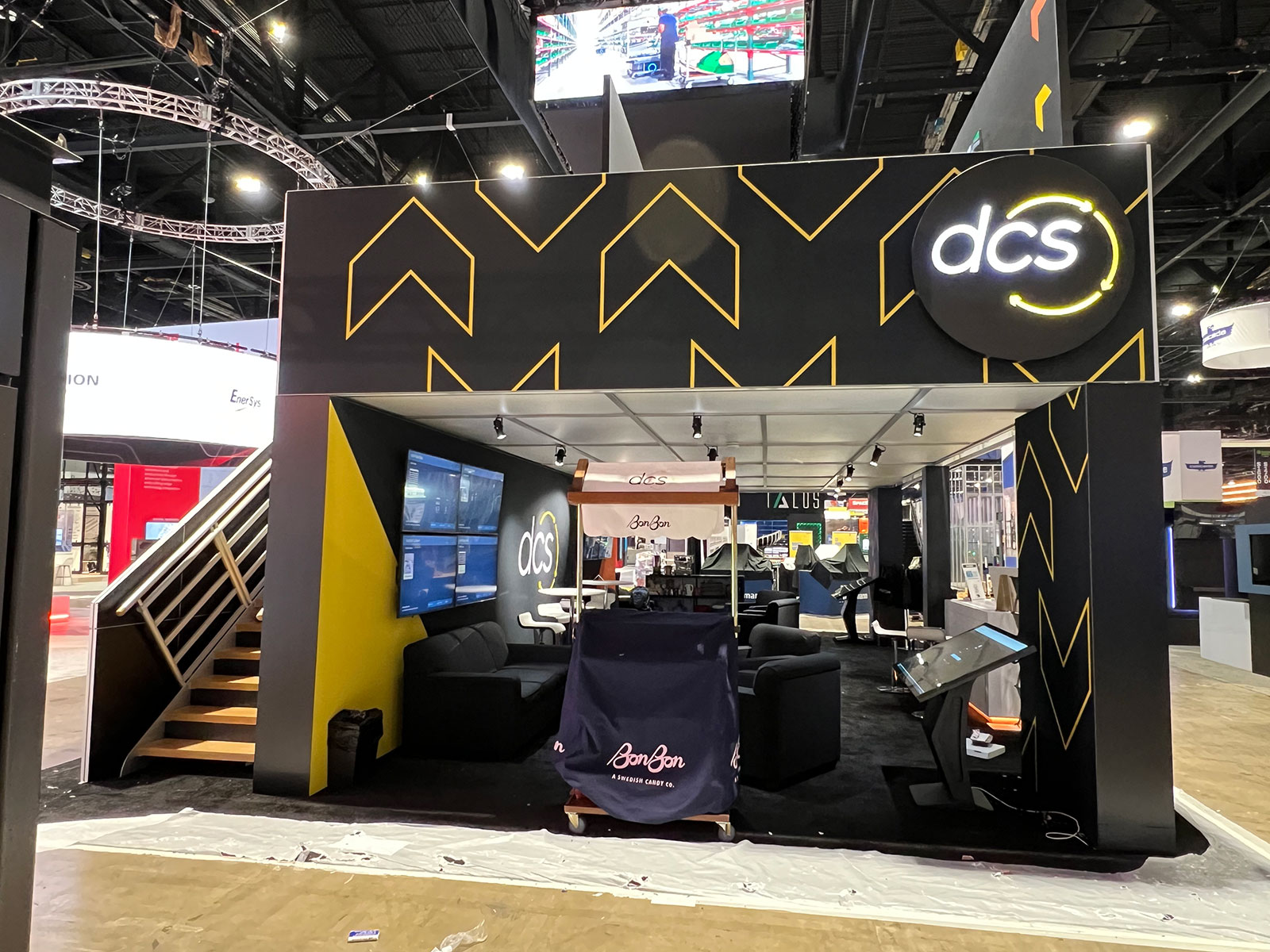 Custom Inline Exhibit with SuperNova Backlit Lightboxes, (4) Product Shelves, Storage Closet, Fabric and Direct Print Graphics, Reception Counter w/ Open Storage, and Counter w/ Locking Storage and Wireless Charging Pads Custom Inline Exhibit with SuperNova Backlit Lightboxes -- View 2 Custom Inline Exhibit with SuperNova Backlit Lightboxes -- View 3 Custom Inline Exhibit with SuperNova Backlit Lightboxes -- View 4 Custom Inline Exhibit with SuperNova Backlit Lightboxes -- View 5 Custom Inline Exhibit with SuperNova Backlit Lightboxes -- View 6