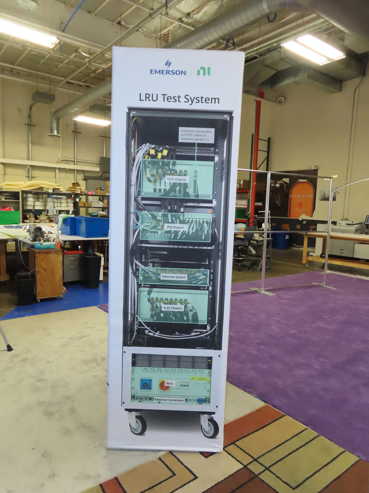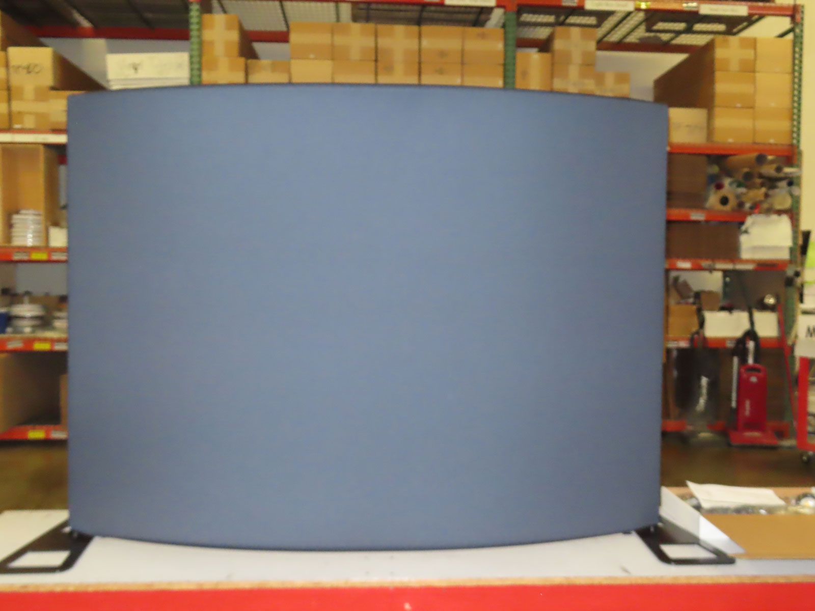 RENTAL: Modified RE-2103 Inline Design with Gravitee Panel System Backwall, Custom Hardrock Maple Laminated Soffits with Recessed Puck Lights, Extrusion Supported Laminated Shelving, Large Monitor Mount, 85" Monitor with HDMI Cable, SEG Fabric Graphics RENTAL: Modified RE-2103 Inline Design with Gravitee Panel System Backwall -- View 2 RENTAL: Modified RE-2103 Inline Design with Gravitee Panel System Backwall -- View 3 RENTAL: Modified RE-2103 Inline Design with Gravitee Panel System Backwall -- View 4