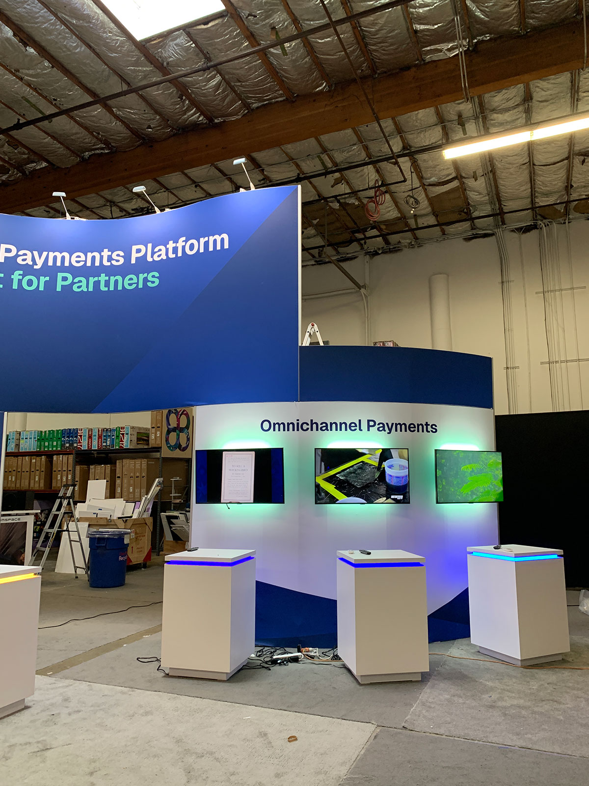 Custom Gravitee Modular Inline Exhibit with SEG Fabric Graphics, (3) Monitor Mounts, Closet Storage, (2) MOD-1509 Backlit Counter with Locking Storage, and (1) Custom Backlit Counter with Wireless Charging Pads Custom Gravitee Modular Inline Exhibit with SEG Fabric Graphics, (3) Monitor Mounts, Closet Storage, (2) MOD-1509 Backlit Counter with Locking Storage, and (1) Custom Backlit Counter with Wireless Charging Pads -- View 2 Custom Gravitee Modular Inline Exhibit with SEG Fabric Graphics, (3) Monitor Mounts, Closet Storage, (2) MOD-1509 Backlit Counter with Locking Storage, and (1) Custom Backlit Counter with Wireless Charging Pads -- View 3 Custom Gravitee Modular Inline Exhibit with SEG Fabric Graphics, (3) Monitor Mounts, Closet Storage, (2) MOD-1509 Backlit Counter with Locking Storage, and (1) Custom Backlit Counter with Wireless Charging Pads -- View 4