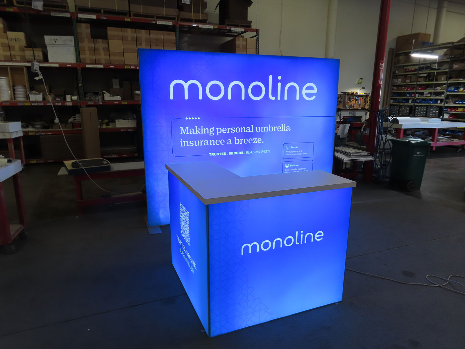 Reception Counter with Backlit Graphics, Wireless Charging Pads,